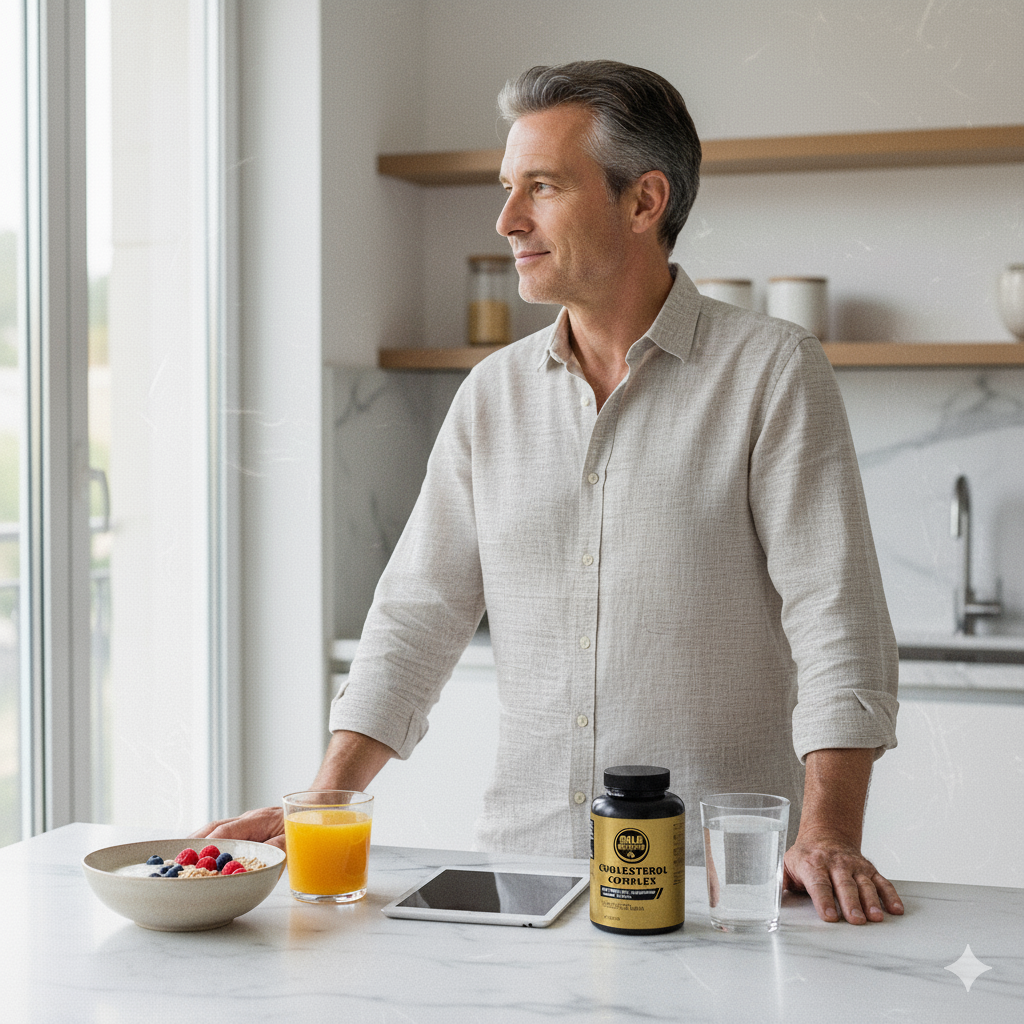 Cholesterol Complex GoldNutrition® is a formula developed to support the regulation of lipid metabolism. It combines four scientifically proven ingredients: plant sterols (Lipophytol®), which reduce the absorption of LDL cholesterol; berberine, which helps lower cholesterol and triglycerides; and monacolins from fermented red rice.