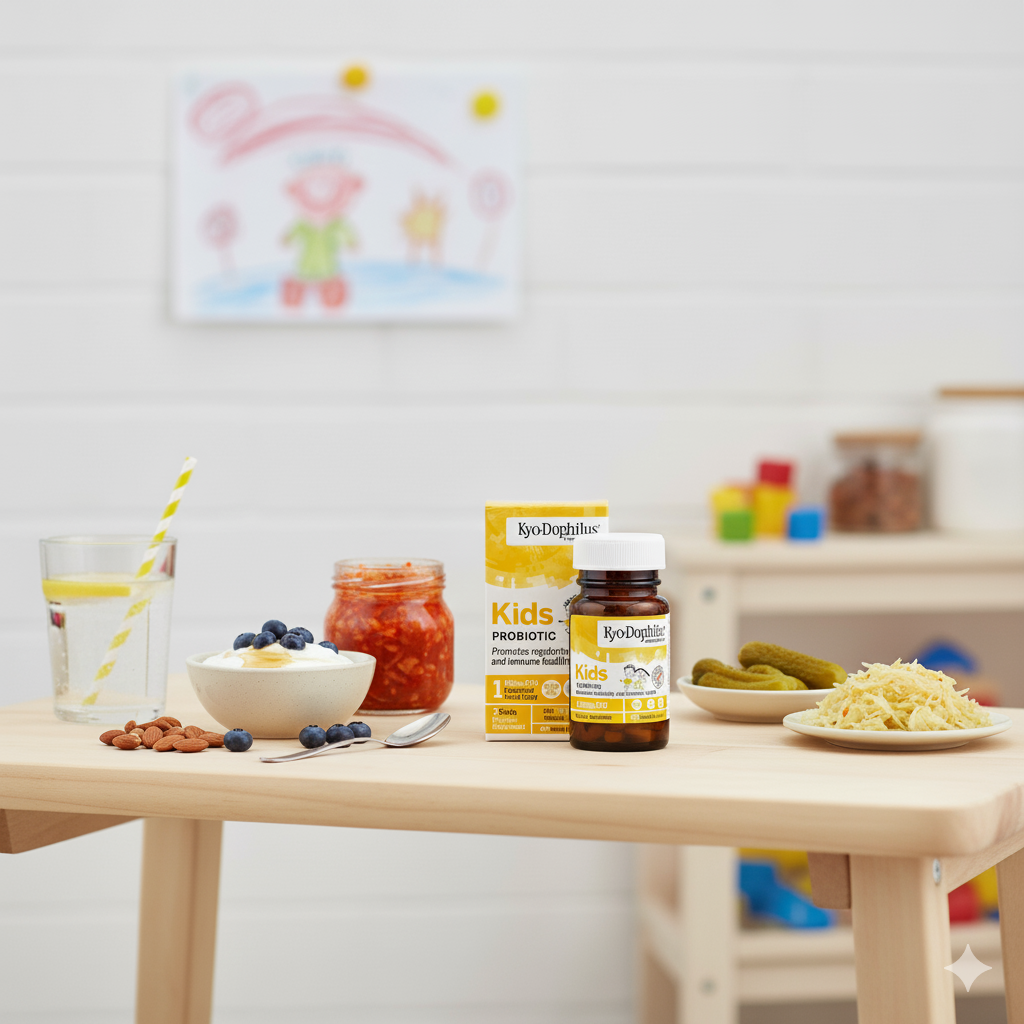 Kids Kyo-Dophilus® was created with this in mind. It's a specific formula for little ones, combining the 3 main probiotic strains that are biocompatible with them: Lactobacillus gasseri, Bifidobacterium bifidum and Bifidobacterium longum - our proven The Friendly Trio®.