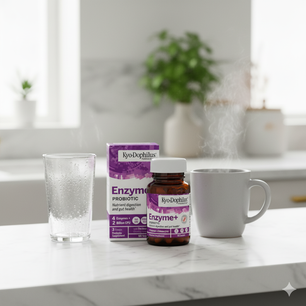 You know that a balanced gut is key to your well-being, right? But sometimes it's not enough just to balance, you also need a little extra help digesting what you eat. Kyo-Dophilus® with Enzymes was created with this in mind: a unique formula that combines the best of both worlds for you.