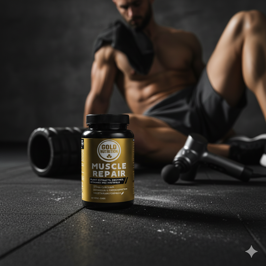 Muscle Repair GoldNutrition® is an innovative supplement designed to aid recovery from soft tissue injuries (muscles, tendons, ligaments). Its formula is based on a combination of plant extracts with powerful anti-inflammatory properties: Curcumin (with 95% curcumin), Boswellia serrata and Harpagophytum.