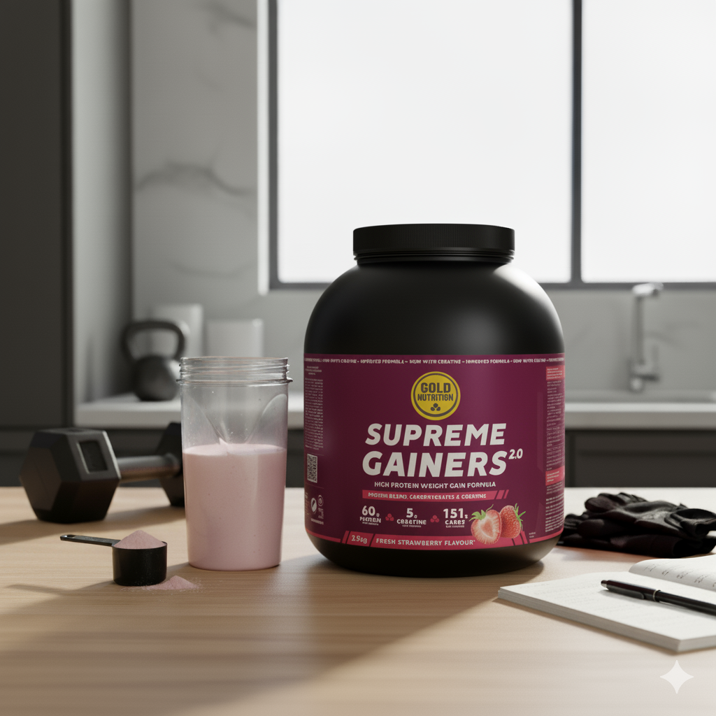 Supreme Gainers 2.0 GoldNutrition® is the solution for those who have difficulty gaining weight or for athletes with high-calorie needs. This high-calorie formula combines whey protein (fast absorption) with casein (slow absorption). This biphasic release of amino acids maintains an anabolic environment for longer, optimizing protein synthesis on an ongoing basis.
