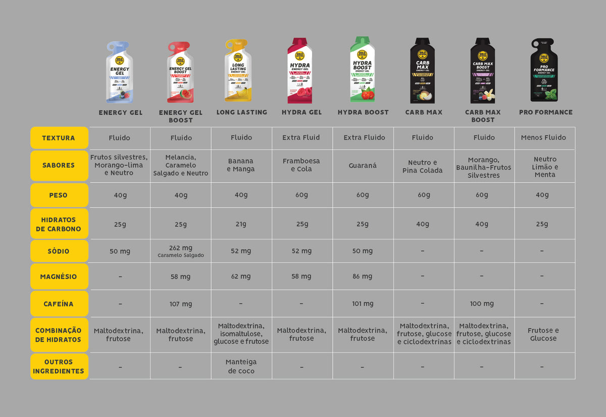 Los geles energéticos son productos muy utilizados por deportistas y entusiastas del ejercicio físico para obtener un rápido aporte de energía durante actividades de alta intensidad. Estos geles están formulados con una combinación de hidratos de carbono de absorción rápida o de hidratos de carbono de absorción prolongada, electrolitos y, en algunos casos, cafeína.